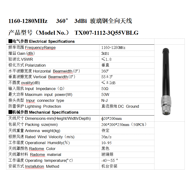 副产物名称:全向钢化塑料无线1.2G 3dbi无人值守机反制武器装备 短钢化塑料无线